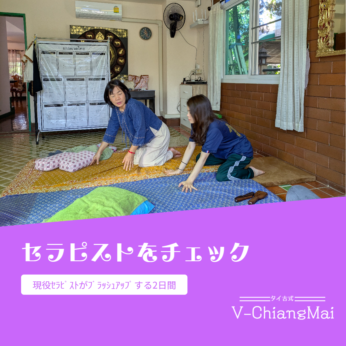 その他、木杭と木槌を使った北タイの伝統的な施術「トークセン4日間」コースや、「現役セラピストの施術をチェックする2日間」コースもありますのでご検討下さい。